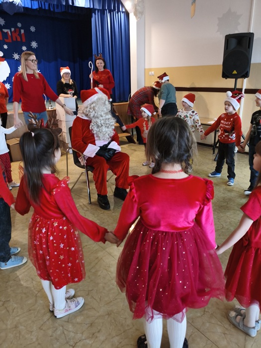 Ku ogromnemu zdziwieniu i radości dzieci Mikołaj pojawił się osobiście, w towarzystwie swoich wesołych elfów. Rozdał upominki, a przedszkolaki odwdzięczyły się pięknymi występami — były wiersze, piosenki i tańce przygotowane specjalnie dla wyjątkowego gościa.