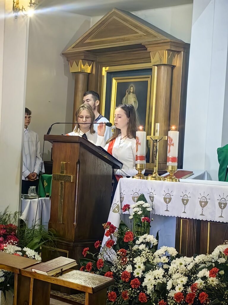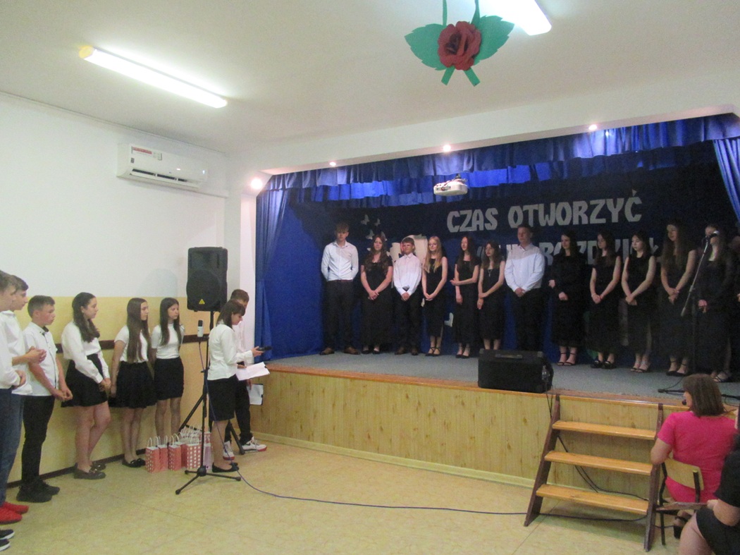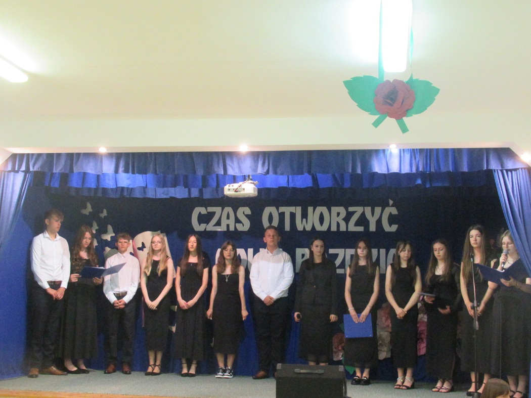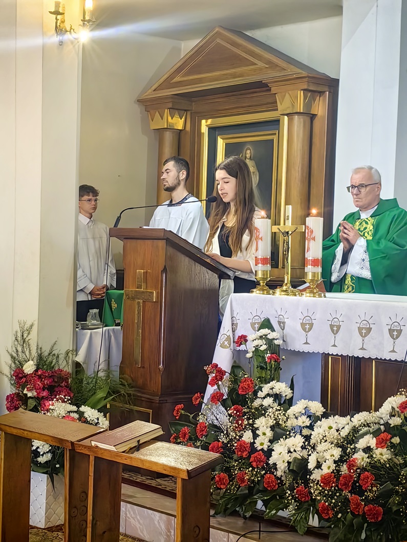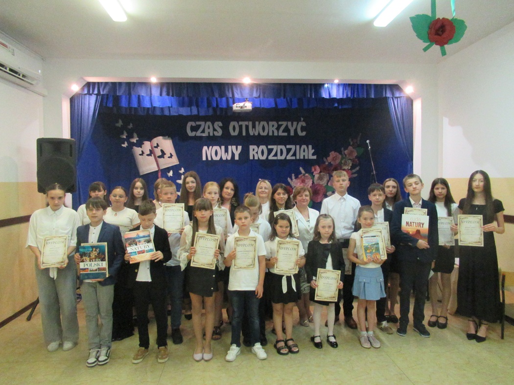 W ostatni piątek czerwca donośny dzwonek zaprosił uczniów, rodziców, grono pedagogiczne z panią dyrektor Zofią Siwiec na czele oraz pracowników naszej szkoły na uroczystość zakończenia tegorocznego pracowitego roku nauki. Pierwszym punktem tego przedpołudnia były słowa pani dyrektor Zofii Siwiec skierowane do wszystkich zebranych, szczególnie do uczniów, którzy mają za sobą ciężki i długi rok, podczas którego zdobywali wiedzę i nowe umiejętności. Następnie nastąpiło przekazanie sztandaru uczniom klasy VII i uroczyste ślubowanie naszych absolwentów, które poprzedziło kolejny punkt tego dnia, czyli wręczenie uczniom zasłużonych nagród za wysokie osiągnięcia w nauce. Pani dyrektor wraz z wychowawcami oraz przewodniczącą Rady Rodziców panią Moniką Przygodą wręczyli uczniom świadectwa z wyróżnieniem oraz nagrody za wysokie osiągnięcia w nauce. W roku szkolnym 2024/2025 dwudziestu czterech uczniów osiągnęło średnią co najmniej 4,75 i otrzymało świadectwa z biało-czerwonym paskiem. Były również wyróżnienia za wysoką frekwencję, wyniki w czytelnictwie oraz nagrody i dyplomy za udział w corocznym konkursie „Znam lektury szkolne”. Kluczowym momentem było także wręczenie teczek absolwenta uczniom klasy VIII oraz podziękowań rodzicom uczniów najstarszej klasy za trud włożony w działalność przez wiele lat w Radzie Rodziców. Ostatnim punktem tego dnia było pożegnanie przygotowane przez uczniów klasy VIII, które zostało rozpoczęte odtańczeniem tradycyjnego poloneza. Wydarzenie to poprzedziło przygotowaną przez nich akademię wraz z pełną wspomnień ze szkolnych lat prezentację multimedialną. Następnie absolwenci skierowali ciepłe słowa do pani dyrektor oraz swoich wychowawców, nauczycieli oraz pracowników szkoły. Podziękowali za trud włożony w opiekę oraz ich edukację i wychowanie. Na zakończenie ich młodsi koledzy z klasy VII ciepłymi słowami pożegnali swoich kolegów i koleżanki życząc im wszystkiego co najlepsze na następnym etapie ich edukacji. Po występie uczniów przejmujących rolę „najstarszych” w szkole wszyscy uczniowie klas 0-VII rozeszli się do klas, aby po raz ostatni spotkać się ze swoimi wychowawcami. Dwudziesty siódmy czerwca już przeszedł do historii, nie obyło się bez kilku łez i wielu chwil wspomnień, teraz czas na odpoczynek. Uroczysta msza święta na zakończenie roku szkolnego odbyła się w naszym kościele parafialnym, w niedzielę dwudziestego drugiego czerwca.