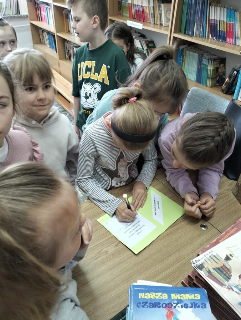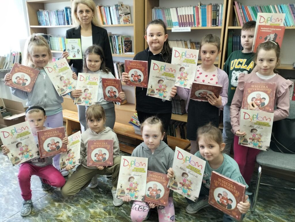 Po takim wprowadzeniu przyszli czytelnicy złożyli uroczyste przyrzeczenie, że zawsze będą szanować książki. Po pasowaniu każdy mógł już wypożyczyć swoją pierwszą książkę. O tym uroczystym wydarzeniu będzie im przypominał pamiątkowy dyplom oraz książka „Wnuczka antykwariusza”, którą otrzymali w ramach akcji „Mała książka – wielki człowiek”. Pierwszoklasiści przygotowali dla Pani bibliotekarki pamiątkową laurkę.