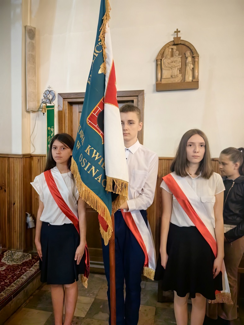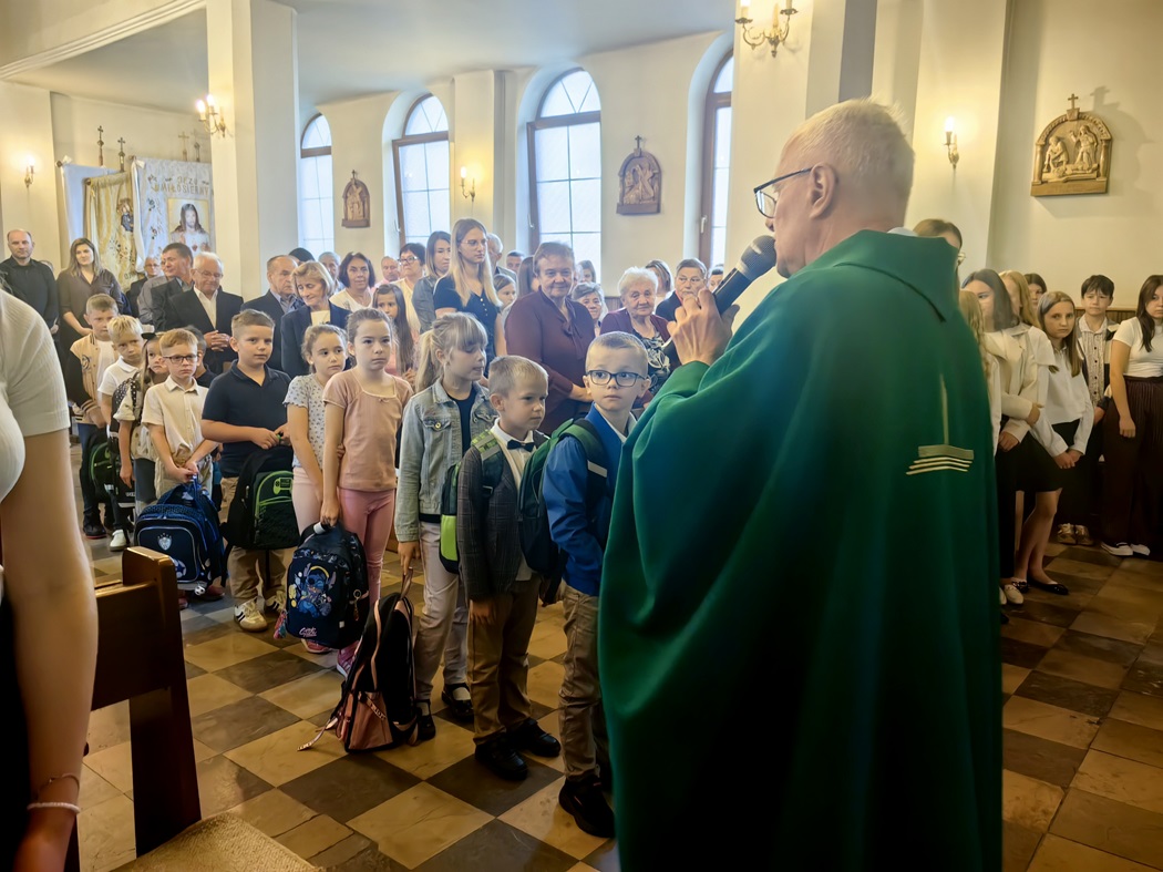 Nasi uczniowie wraz z pocztem sztandarowym wzięli również udział w Mszy Świętej rozpoczynającej rok szkolny, która odbyła się w ostatnią niedzielę sierpnia w naszym parafialnym kościele pod wezwaniem Matki Bożej Częstochowskiej.