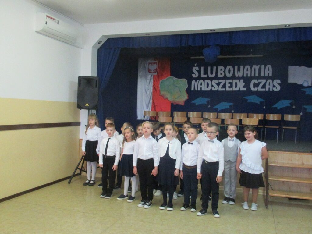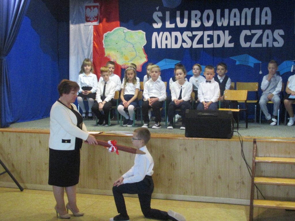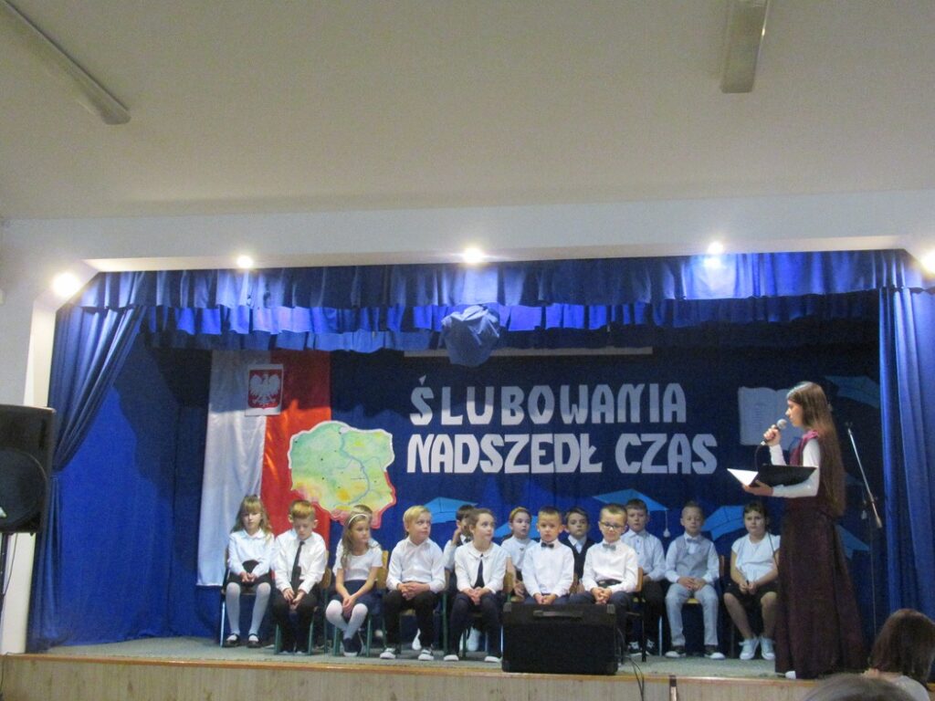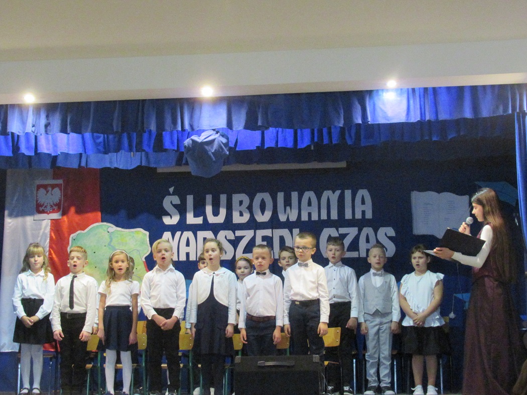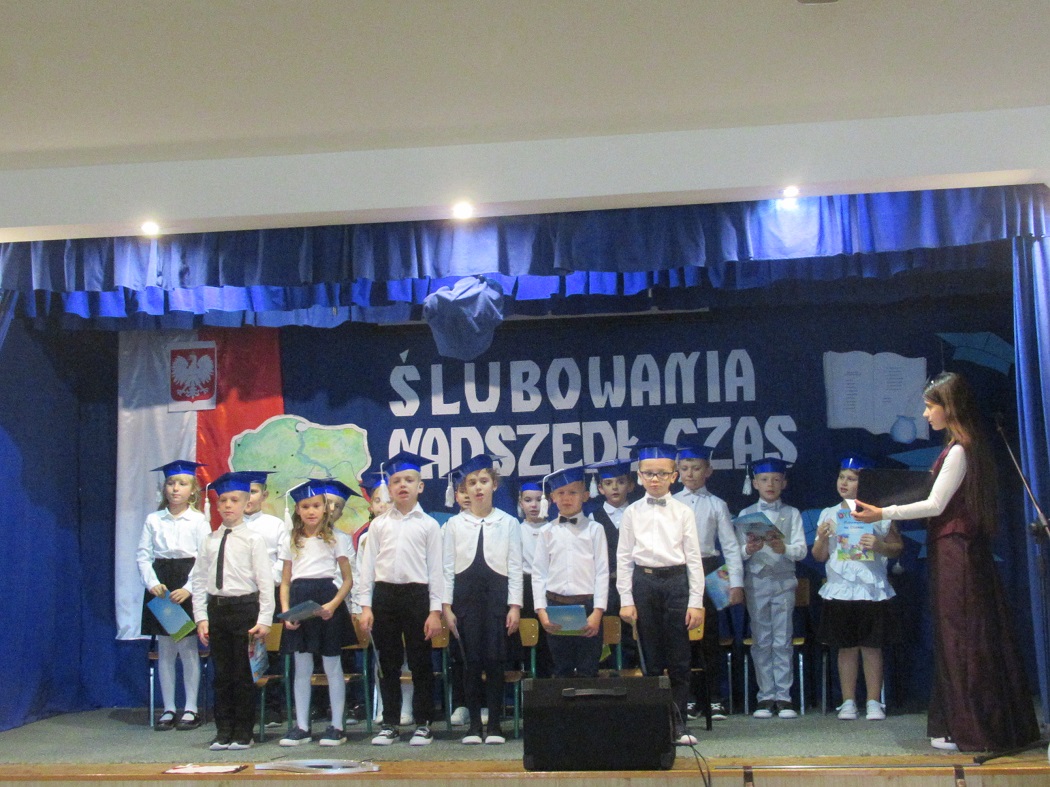 Po odśpiewaniu hymnu i uroczystym ślubowaniu na sztandar szkoły zostali przez panią dyrektor pasowani na uczniów: Lena Antos, Szymon Bielecki, Jan Chmielewski, Helena Garlińska, Jan Grzegorzewski, Laura Guźdź, Antonina Kępa, Amelia Latos, Adam Lisek, Leon Michalczak, Juliusz Muszelski, Antoni Piątek, Stanisław Pietruszka, Szymon Stachowicz, Hanna Strycharska i Marcel Zawadzki.