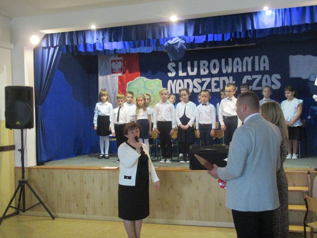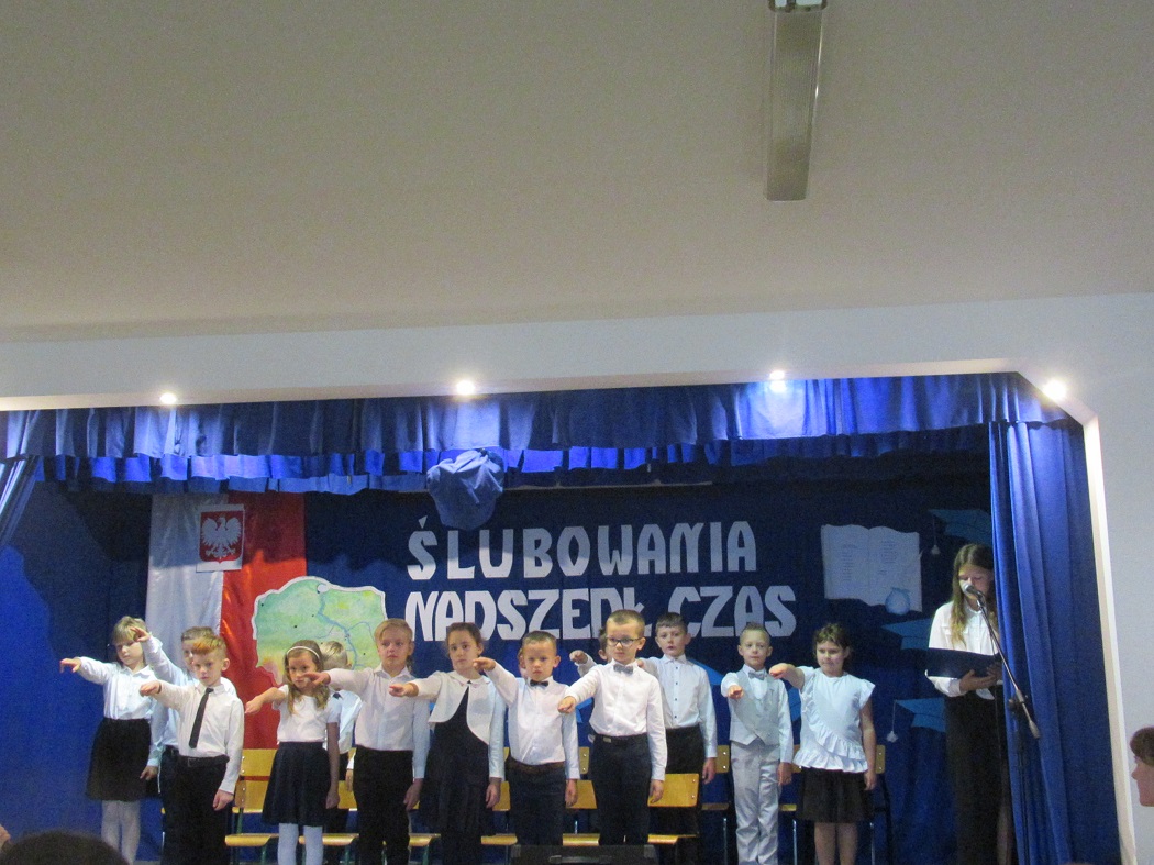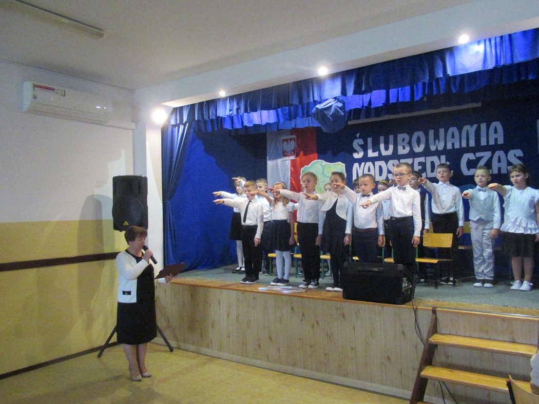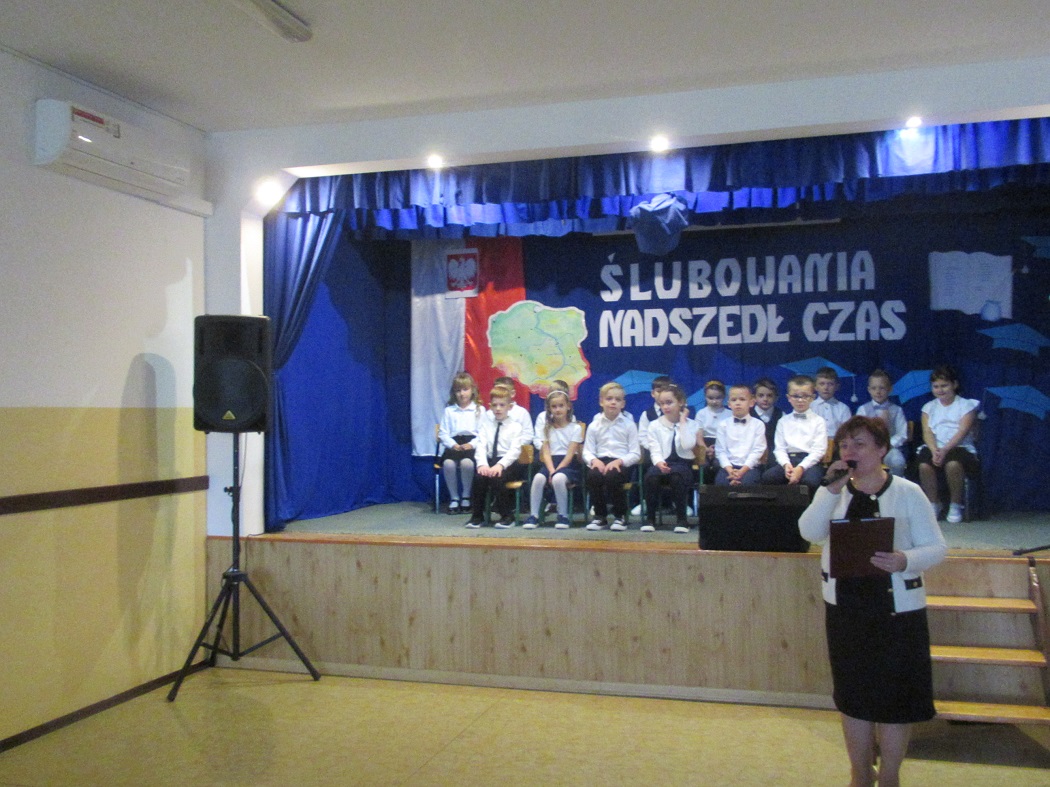 Po odśpiewaniu hymnu i uroczystym ślubowaniu na sztandar szkoły zostali przez panią dyrektor pasowani na uczniów: Lena Antos, Szymon Bielecki, Jan Chmielewski, Helena Garlińska, Jan Grzegorzewski, Laura Guźdź, Antonina Kępa, Amelia Latos, Adam Lisek, Leon Michalczak, Juliusz Muszelski, Antoni Piątek, Stanisław Pietruszka, Szymon Stachowicz, Hanna Strycharska i Marcel Zawadzki.