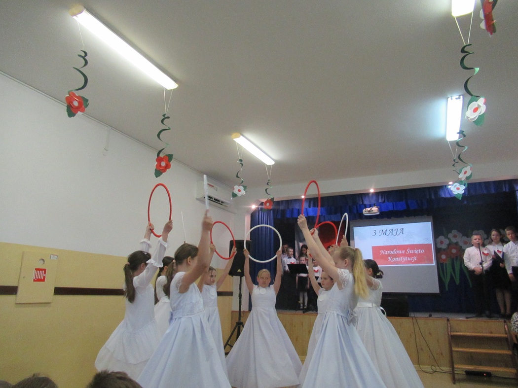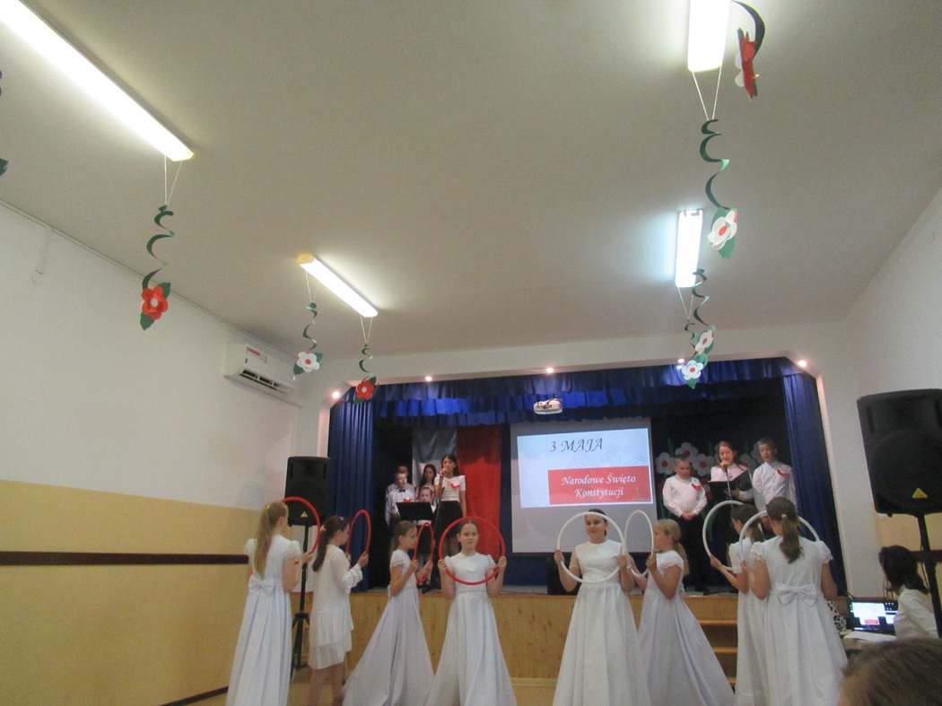 30 kwietnia 2025 roku, w naszej szkole odbyła się uroczysta akademia z okazji uchwalenia Konstytucji 3 Maja. To wyjątkowe wydarzenie w historii Polski, które każdego roku upamiętniamy z dumą i wzruszeniem. Uroczystość rozpoczęła się od wprowadzenia pocztu sztandarowego i odśpiewania hymnu narodowego. Następnie głos zabrała Pani Dyrektor Zofia Siwiec, która przywitała zaproszonych gości, wśród których byli wójt gminy Mirzec Mirosław Seweryn, przewodnicząca Rady Gminy w Mircu Sylwia Błach, radni z Osin Iwona Seweryn i Mieczysław Strycharski, ksiądz Jacek Celuch proboszcz parafii Matki Boskiej Częstochowskiej w Osinach, kierownik Centrum Usług Wspólnych Agata Mundzik, członkinie Rady Sołeckiej wraz z sołtysem Romanem Stomporem, panie z Koła Gospodyń Wiejskich „Osinianki”. Po przywitaniu gości pani Dyrektor Zofia Siwiec wspomniała o rocznicy pacyfikacji robotników z 1 maja 1886 roku, przypadającym 2 maja Dniu Flagi oraz rocznicy uchwalenia Konstytucji 3 Maja. W dalszej części uczniowie klas I, IV, V, VI zaprezentowali przygotowany program artystyczny – były piękne recytacje wierszy patriotycznych, wzruszające pieśni oraz układy taneczne. Zwieńczeniem uroczystości był przepiękny Taniec z flagami symbolizujący szacunek i dumę przekazywany naszym barwom narodowym oraz odśpiewanie przez chór szkolny utworu Żeby Polska, które spotkały się z ogromnym aplauzem publiczności. Wspaniałe stroje, powaga i zaangażowanie wszystkich młodych artystów sprawiły, że w oczach wielu widzów pojawiły się łzy wzruszenia. Po zakończeniu programu głos zabrał wójt gminy Mirzec Mirosław Seweryn, który przekazał na ręce pani dyrektor Zofii Siwiec album 100 polskich legionistów oraz słodki upominek dla młodych artystów, zaś przewodnicząca Rady Gminy w Mircu Sylwia Błach i ksiądz Jacek Celuch, przypomnieli zebranym jak ważną wartość ma wolność i niepodległość kraju. Akademia była ważną lekcją historii, patriotyzmu oraz wspólnoty narodowej. Dziękujemy wszystkim uczniom, nauczycielom, rodzicom oraz pracownikom szkoły za wkład w organizację tej pięknej uroczystości.