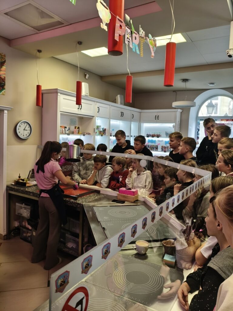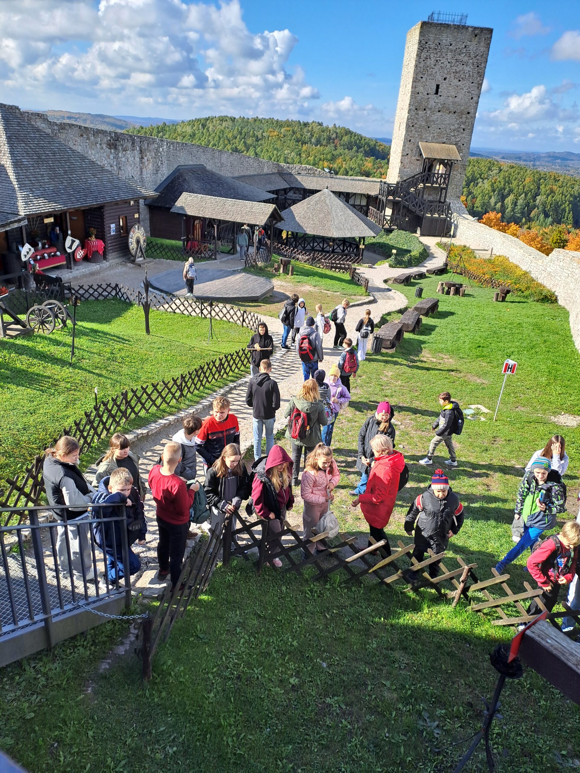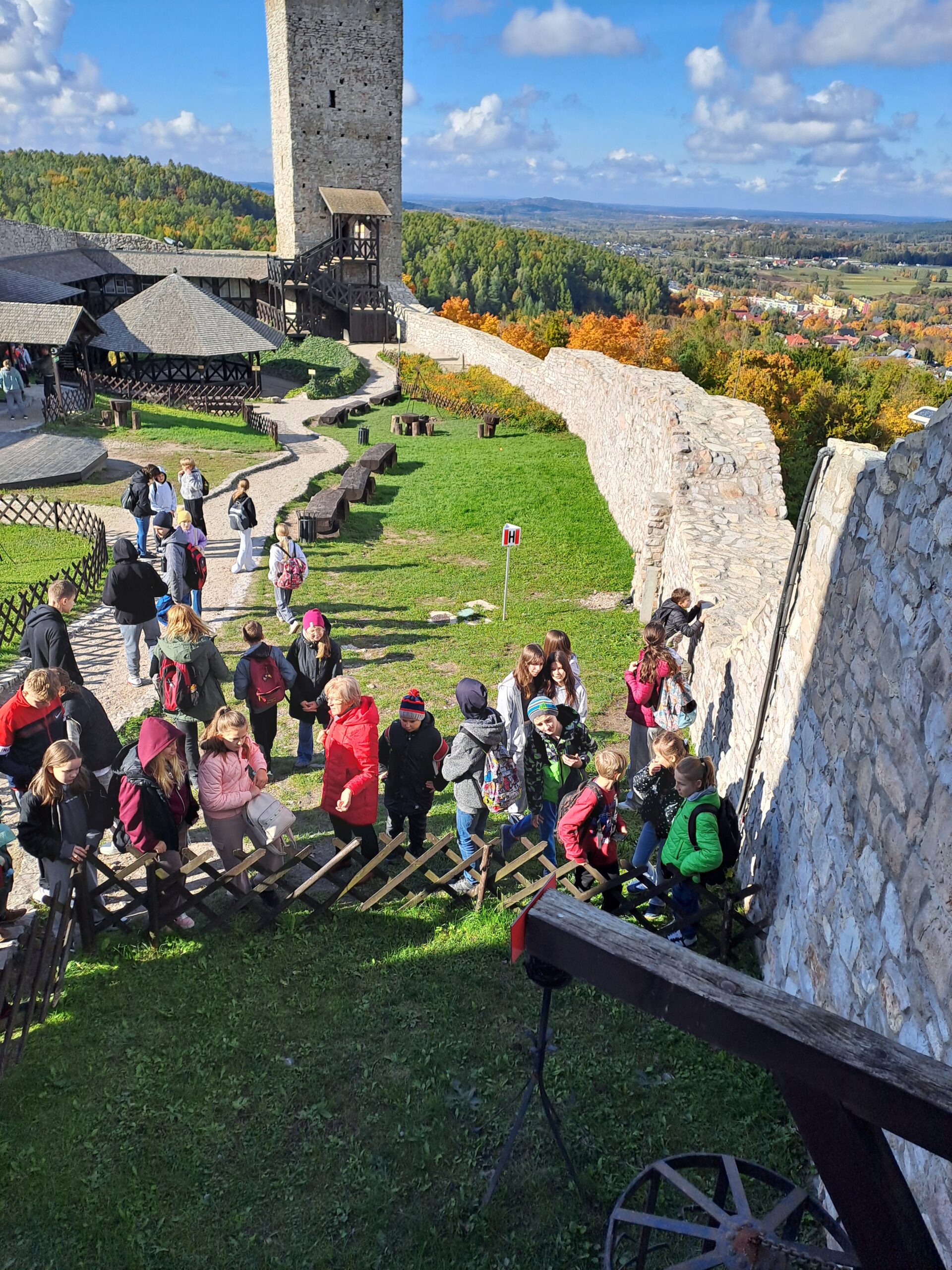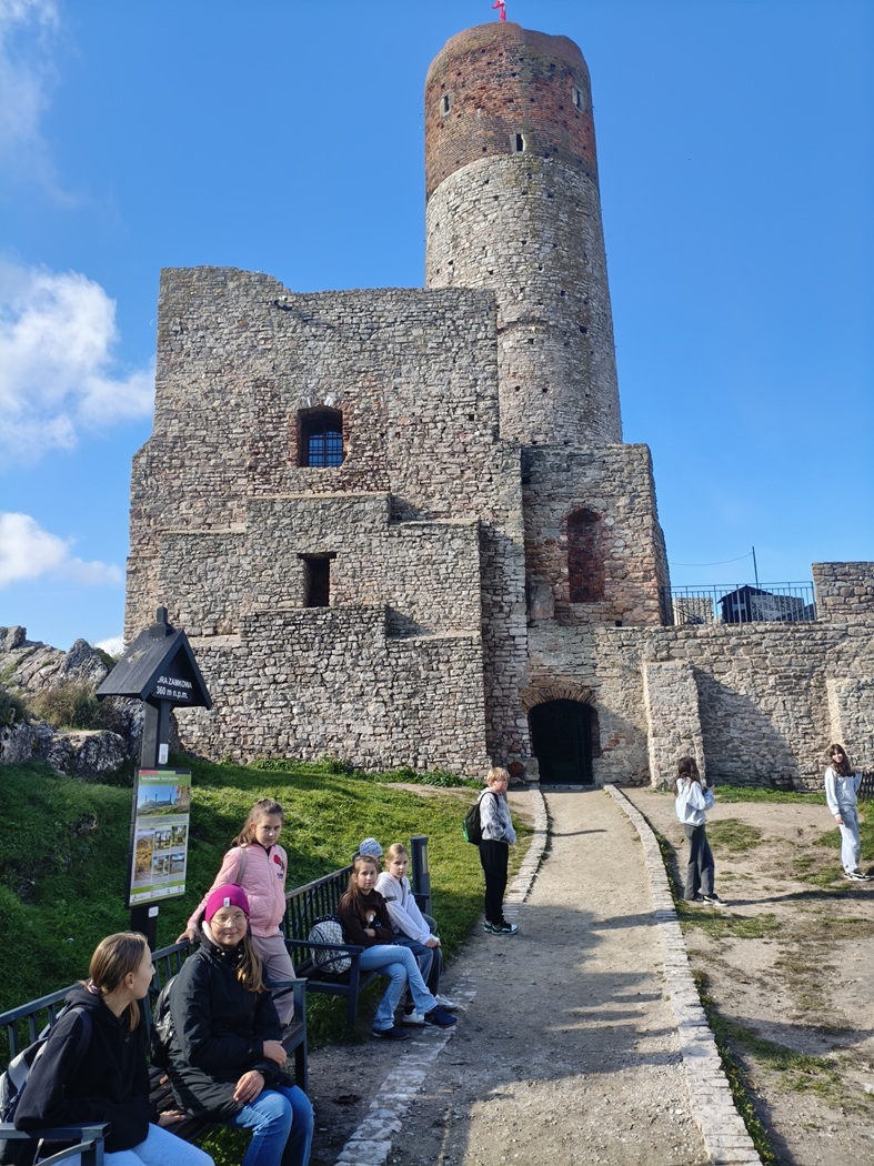 15 października uczniowie klas IV-VIII wraz z opiekunami udali się na wycieczkę szkolną po ziemi świętokrzyskiej. Zwiedzanie rozpoczęliśmy od miejscowości Zagnański, gdzie rośnie ,,Król Puszczy Świętokrzyskiej’’ – Dąb Bartek. Jego wiek szacuje się na 700-1000 lat. W jesiennej scenerii ten pomniki przyrody wywarł na wszystkich niesamowite wrażenie. Kolejnym punktem wycieczki była wizyta w jednej z najpopularniejszych jaskiń w Polsce – Jaski Raj. Uczniowie mogli podziwiać przepięknie zachowane formy krasowe: stalaktyty, stalagmity oraz stalagnaty. Przewodnicy przybliżyli nam historię jaskini i opowiedzieli różne ciekawostki z nią związane. Po wizycie w jaskini udaliśmy się na zwiedzanie ruin zamku w Chęcinach. Piękna pogoda sprawiła, że widoki z wzgórza zamkowego i szczytu baszty zapierały dech w piersiach. Ostatnim punktem programu był spacer po Kielcach oraz wizyta z Manufakturze Słodyczy ,,Magia Karmelu’’.  Uczniowie wzięli udział w specjalnie przygotowanych dla nich warsztatach karmelowych, w trakcie których zobaczyli niezmieniony od wieków ręczny sposób tworzenia wyrobów z karmelu - kolorowych cukierków i lizaków. Po pokazie odbyła się degustacja jeszcze ciepłych karmelków. Na zakończenie każdy wykonał własny lizak i otrzymał pamiątkowy dyplom „Młodego Karmelarza’’.
