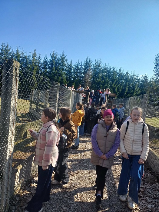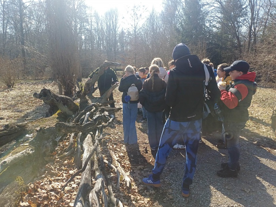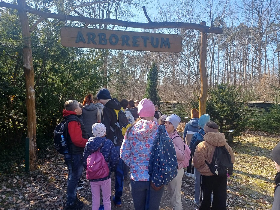 Kolejnym punktem programu wycieczki był spacer po Arboretum, gdzie uczniowie podziwiali różne gatunki drzew, krzewów, roślin oraz zwierząt występujących na terenie ogrodu. Pobyt w Marculach zakończył się wspólnym posiłkiem w pobliskim lokalu “Barze pod Lasem”.